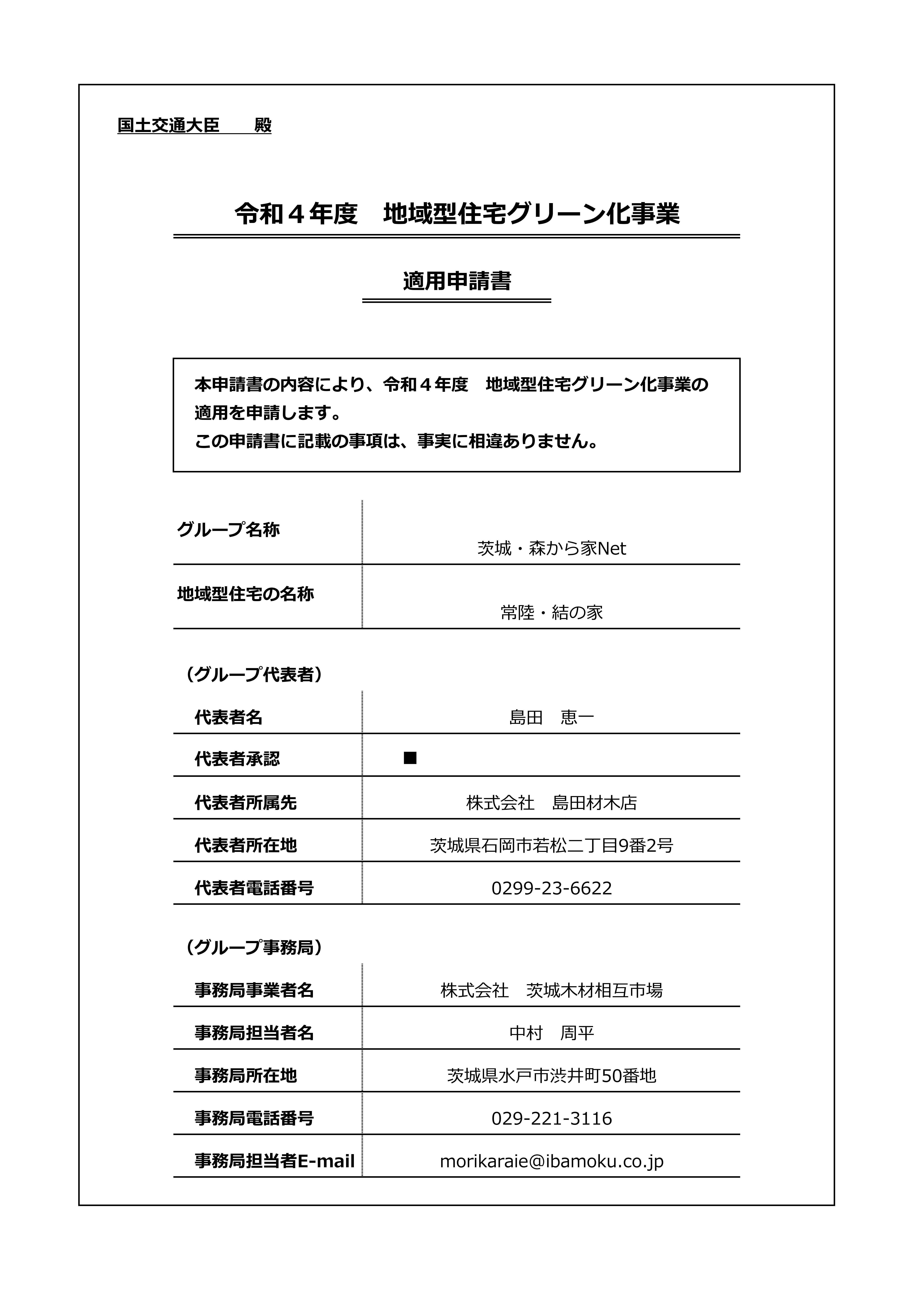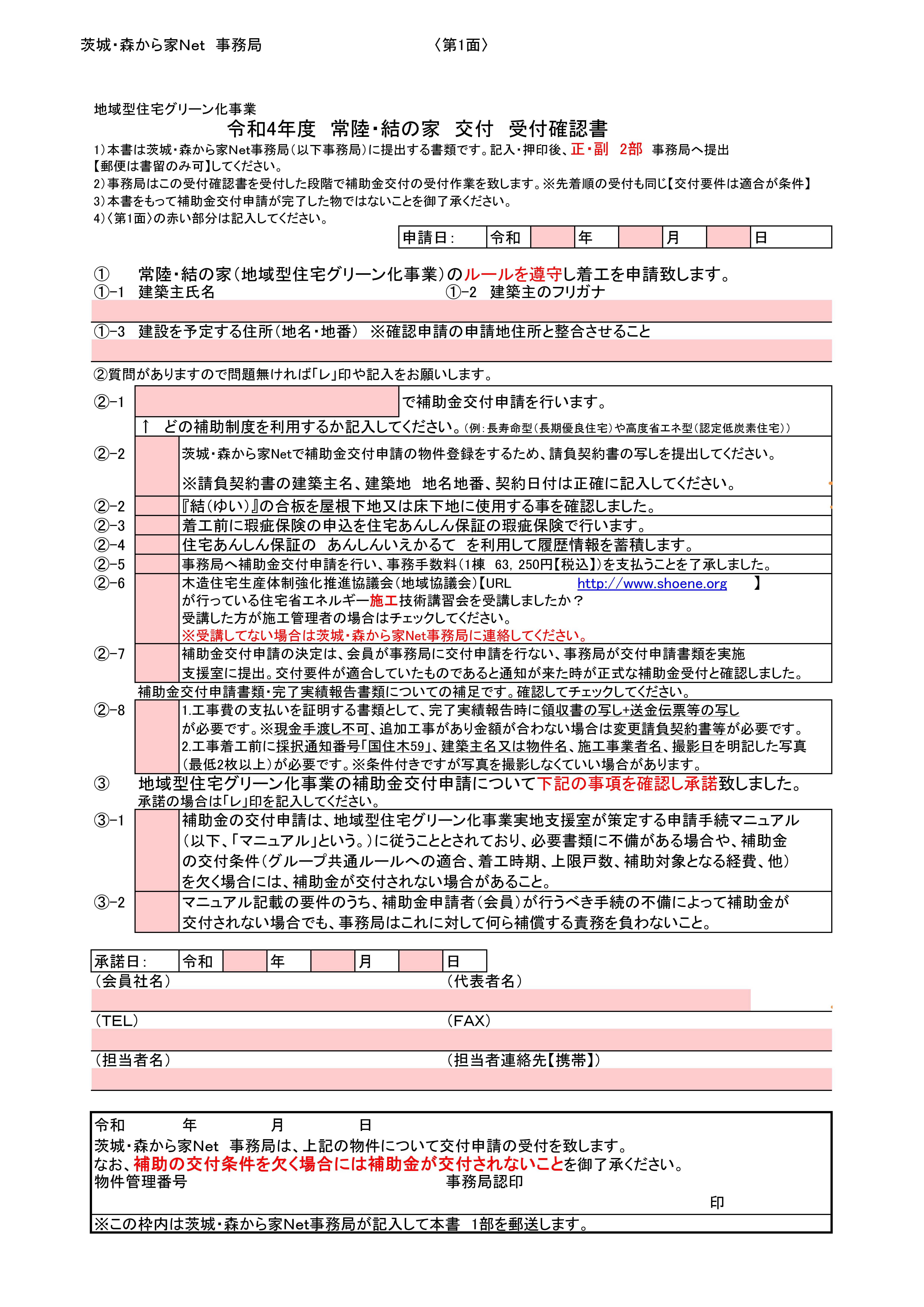 | 令和4年度 常陸・結の家 交付 受付申請書 【茨城・森から家Net専用書式】 |